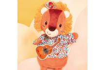 Design attractif : Lion musicien avec une guitare, accompagné de son ami perroquet caché dans la crinière, pour stimuler la curiosité et l’attention des enfants.