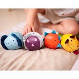 Faites découvrir à votre enfant l’univers fascinant des dinosaures avec ce set de 4 balles doudous aux textures variées et aux sons captivants. Composé d’un Tricératops, d’un Dimétrodon, d’un Stégosaure et d’un Tyrannosaure, ce coffret ludique stimule l’éveil sensoriel et la motricité des tout-petits.