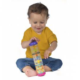 Le bâton de pluie est un jouet sensoriel idéal pour accompagner les premiers apprentissages de bébé. Facile à attraper avec ses petites mains, il permet à l’enfant de le retourner ou le secouer pour faire descendre les billes et écouter le doux son de la pluie. Ce jouet musical stimule à la fois la coordination œil-main, l’éveil auditif et la curiosité naturelle de bébé.
