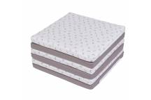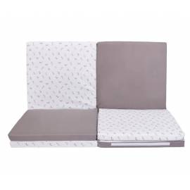 Mousse haute densité (700 g/m², épaisseur 5 cm) pour un confort optimal. Le dessous est en polypropylène, une matière résistante assurant la durabilité du produit.