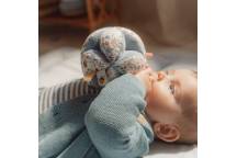 Avec sa forme originale et ses textures variées, cette balle de préhension stimule la curiosité naturelle de votre bébé tout en développant sa motricité fine. Conçue pour être facilement attrapée par les petites mains, elle offre un moment de jeu sensoriel plein de découvertes.