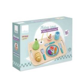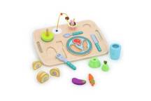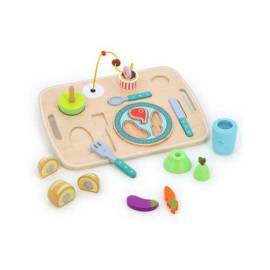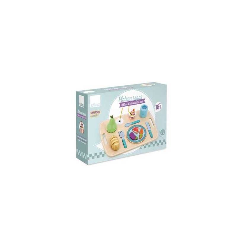 Stimulez l’imagination et la motricité fine de votre enfant avec ce plateau repas d’éveil en bois plein de surprises.