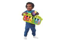 Accessoires variés : 3 hochets détachables (guitare, tambourin avec miroir, partitions), un maraca et un petit tambour pour développer la motricité fine et la coordination.