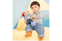 Jules stimule la motricité, la curiosité et les sens (toucher, vue, ouïe), tout en offrant des moments de tendresse grâce à ses matières variées et colorées. Sur ses oreilles, un petit avion rappelle sa passion du bricolage et de l’imagination !