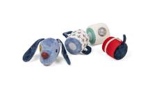 Le premier cylindre, à l’effigie de Jules le chien, émet un doux tintement de clochette et possède de grandes oreilles souples à attraper et caresser.