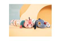 Composé de 4 cylindres en peluche reliés par des attaches scratch, ce rouleau peut être assemblé et démonté à volonté. Chaque partie révèle une activité différente pour éveiller les sens :