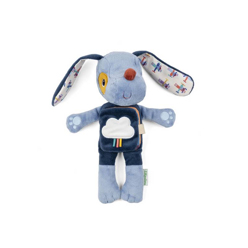 Jules, notre petit chien aviateur, cache plus d’une surprise : son imagier en tissu intégré raconte une histoire du coucher illustrée de jolies scènes pleines de douceur. Ensemble, on apprend à mettre son pyjama, se brosser les dents, faire un gros bisou avant de se glisser sous la couette.