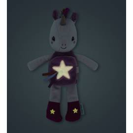 Mais la magie ne s’arrête pas là : quand la lumière s’éteint, les étoiles de Lena s’illuminent dans le noir ! Cette fonction phosphorescente diffuse une lueur douce et apaisante, plus réconfortante qu’une veilleuse, pour rassurer bébé et l’aider à s’endormir paisiblement. Grâce à ses motifs brillants, impossible de perdre sa licorne préférée pendant la nuit.