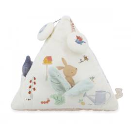 Entre la libellule qui survole la mare et le lapin caché dans le chou, chaque détail invite à l’imaginaire. Ce jouet d’éveil léger et facile à manipuler offre une multitude de textures à toucher, à secouer, à écouter et à gratter, favorisant l’éveil multisensoriel en toute sécurité.