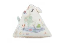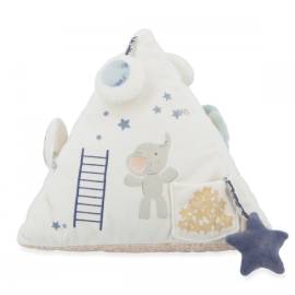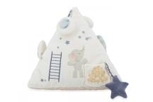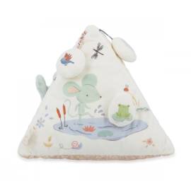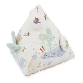 La première pyramide de bébé est un véritable concentré d’éveil sensoriel. Conçue pour stimuler l’ouïe, la vue et la motricité fine, elle accompagne les tout-petits dans leurs premières explorations du monde. À disposer dans le parc ou sur le tapis d’éveil, ce triangle en tissu regorge d’activités ludiques et tendres, réparties sur trois faces pleines de surprises.