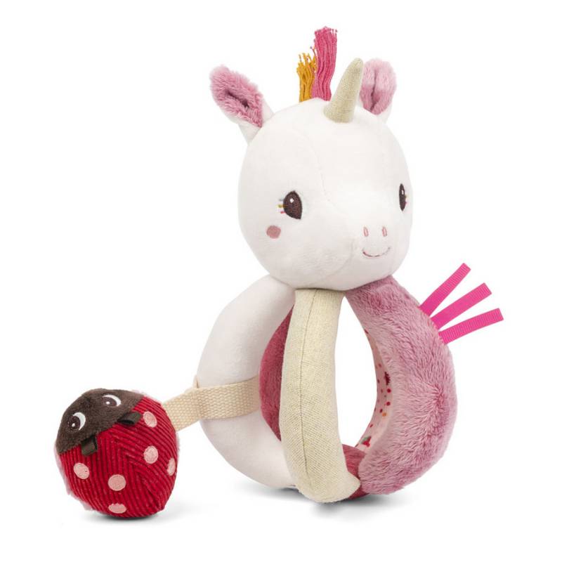 Lena la licorne et sa petite coccinelle invitent bébé à explorer un hochet tout doux doté de 4 activités sensorielles. Entre le hochet intégré, les poignées aux textures variées, le papier bruissant et le mini hochet caché dans la coccinelle, chaque manipulation devient une nouvelle découverte.