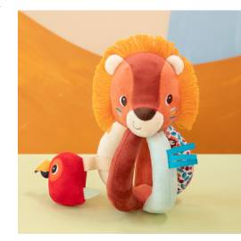 Jack le lion et Gilles le perroquet forment un duo plein de douceur dans ce hochet à poignées pensé pour les bébés dès 6 mois. Il propose 4 activités sensorielles : un hochet intégré dans la tête de Jack, des poignées aux textures variées, du papier bruissant et un mini hochet caché dans le perroquet pour encourager l’exploration.