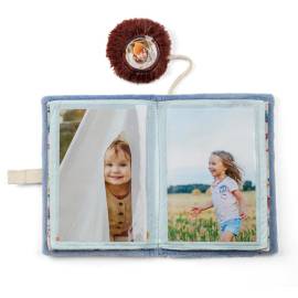 Cet album photo en tissu tout doux, pensé pour les enfants dès 9 mois, offre 10 pochettes pour glisser les photos de la famille et des proches. Chaque page est décorée d’illustrations inspirées de l’univers de Jeanne le chat et de ses amis du jardin. Un marque-page rond décoré d’une souris permet de personnaliser l’album avec la photo de votre enfant.