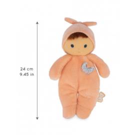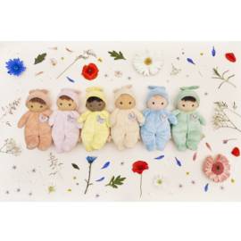 Bébé Zinnia est un poupon en tissu de 24 cm, parfait dès la naissance. Avec son corps couleur pêche, ses yeux bleus expressifs et son bonnet noué, il se distingue par sa douceur et son charme apaisant. Fabriqué en micro-velours et velours côtelé, et rembourré en polyester recyclé, il offre une texture moelleuse idéale pour les câlins et l’éveil sensoriel des tout-petits.