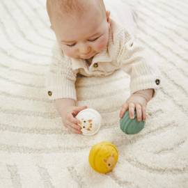 Ce lot de 3 balles musicales en caoutchouc naturel est spécialement conçu pour stimuler l’éveil sensoriel de bébé dès ses 3 mois. Légères, souples et faciles à prendre en main, elles invitent bébé à manipuler, secouer et presser, tout en s’amusant.