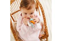 Il se compose de 3 petites clés colorées, souples et texturées, parfaitement adaptées à la bouche de bébé. Faciles à attraper par les petites mains, elles proposent différentes sensations à mordiller, stimulant le toucher tout en calmant les gencives sensibles.