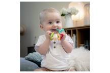 En l’agitant, bébé découvre le bruit des petites billes colorées qui s’entrechoquent, stimulant ainsi la vue et l’ouïe. Sa forme d’anneau ergonomique le rend facile à saisir et à manipuler par les petites mains.
