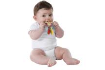 Les couleurs acidulées et transparentes éveillent la vue et rendent ce hochet encore plus attrayant. Un jouet complet, à la fois sensoriel, apaisant et ludique.