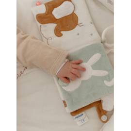 Le livre d’éveil en tissu Verdi invite bébé à explorer textures, sons et surprises à chaque page : papier froissé, miroir incassable, pouet, clochette, rabats à soulever et pochette cache-cache stimulent sa curiosité et sa motricité fine. Souple et facile à manipuler, il accompagne bébé à la maison comme en balade et favorise les moments de complicité parent-enfant.