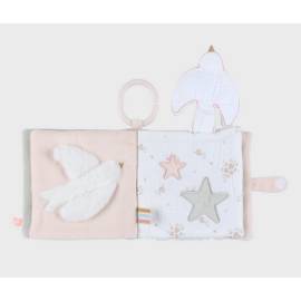 Le livre d’éveil en tissu Rosie invite bébé à découvrir un univers sensoriel riche en textures et en sons : papier froissé, miroir incassable, pouet, clochette, rabats à soulever et pochette surprise stimulent sa curiosité et sa motricité fine. Souple et facile à manipuler, il s’emporte partout et favorise de tendres moments de complicité parent-enfant.
