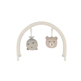 Arche de jeux avec 2 jouets sensoriels pour encourager le développement des sens et la coordination œil-main dès les premiers mois.