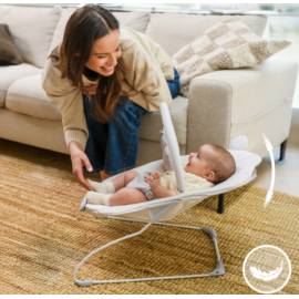 MoMi GLOSSY, le transat vibrant avec mélodies qui apaise bébé et stimule ses sens au quotidien.