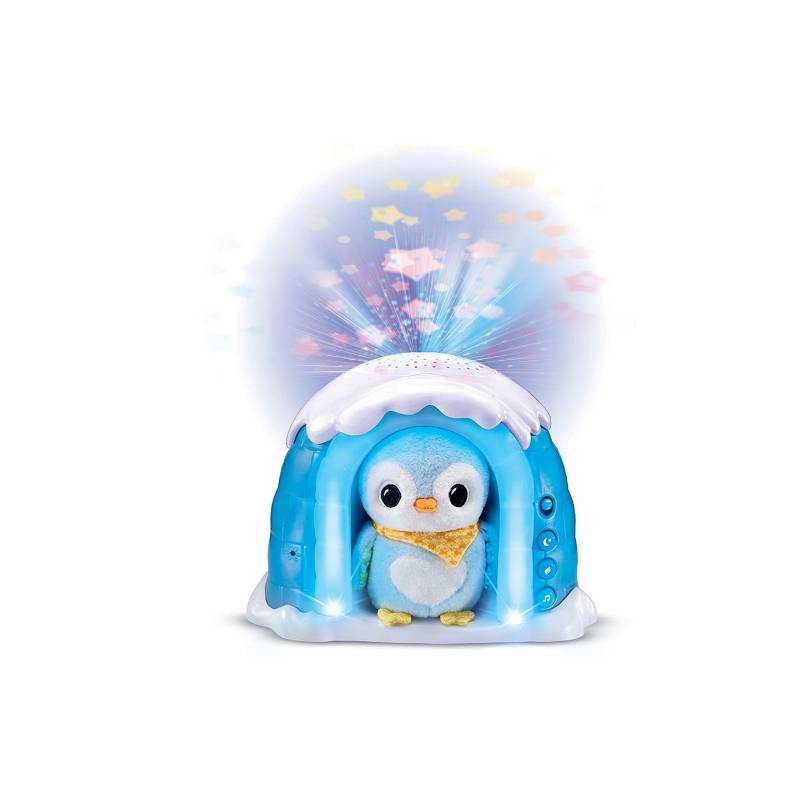 Lorsque le pingouin est placé dans l’igloo, il déclenche une projection étoilée et des mélodies apaisantes, transformant la routine du coucher en un moment réconfortant et enchanteur.