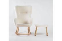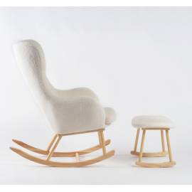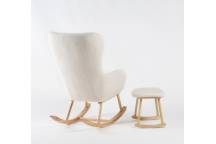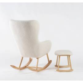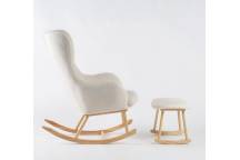 Ce fauteuil à bascule élégant associe design moderne et confort chaleureux grâce à son revêtement en tissu bouclé de couleur ivoire, parfait pour apporter une touche scandinave et contemporaine à votre intérieur. Sa structure en bois naturel et son assise incurvée offrent un soutien optimal et un balancement doux, créant un espace de détente idéal. Le fauteuil est accompagné d'un repose-pieds assorti, également monté sur des patins pour une expérience de bascule complète et harmonieuse.