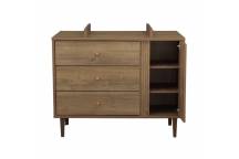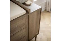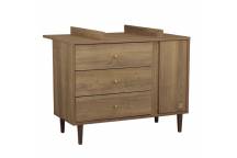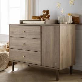 Craquez pour la commode Mokka, un meuble au coloris bois foncé tendance et chaleureux, agrémenté de poignées dorées mates et de détails striés sophistiqués. Ce design audacieux et raffiné apporte caractère et élégance à la chambre de votre bébé. Associez-la à des couleurs douces pour créer un environnement cocooning et design, idéal pour un espace apaisant et moderne.