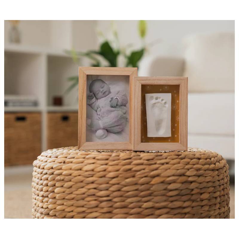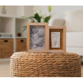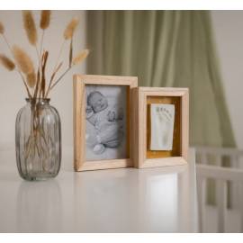 Le Cadre Duo - Daisy Ochre est un cadre élégant à deux volets reliés, conçu pour capturer les souvenirs précieux de bébé en affichant à la fois une empreinte et une photo. Son design doux et intemporel en fait un élément décoratif unique, parfait pour embellir une chambre d’enfant ou un intérieur chaleureux.