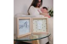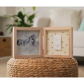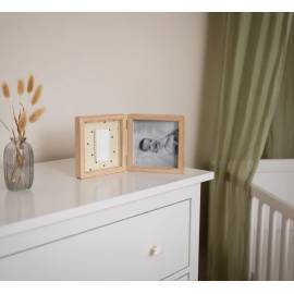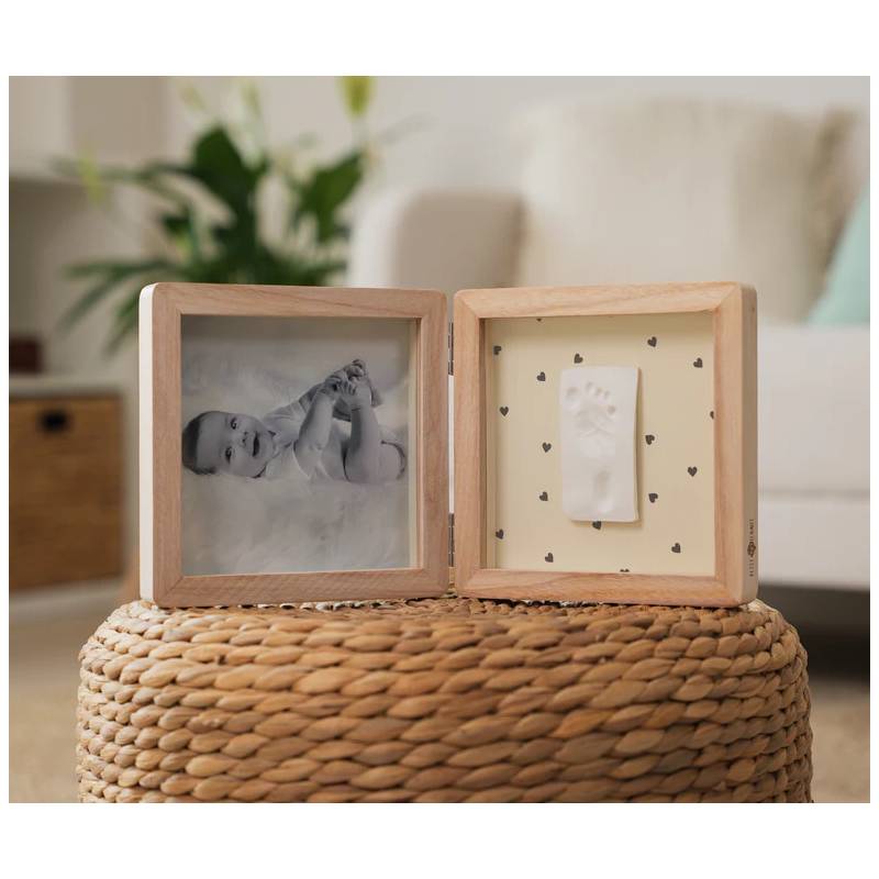 Le Cadre Double - Jolis Cœurs est une façon tendre et élégante de capturer les souvenirs inoubliables des premiers mois de bébé. Ce cadre en bois à deux panneaux permet d’afficher une photo précieuse d’un côté et une empreinte détaillée de bébé de l’autre.