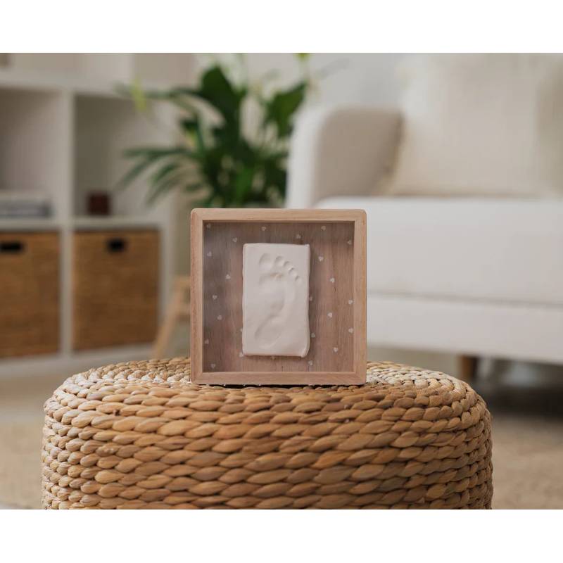 Le Print Box - jolis cœurs est un cadre en bois élégant et charmant qui permet de capturer l'empreinte des petites mains ou pieds de bébé. Ce cadre carré décoré d'un motif de cœur apportera une touche colorée et joyeuse à n'importe quelle pièce de votre maison. Il peut être facilement posé sur une étagère ou accroché au mur pour sublimer votre intérieur tout en conservant un souvenir unique de bébé.