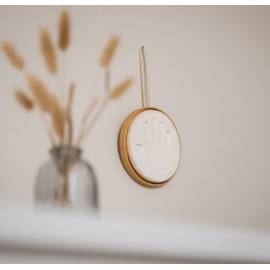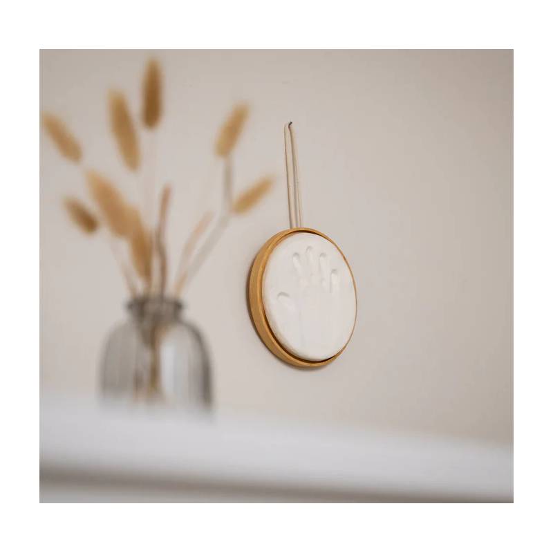 Le médaillon en bois souvenir permet de conserver l’empreinte de bébé dans un ornement raffiné à suspendre dans la chambre des parents, de l’enfant ou dans tout autre espace.
