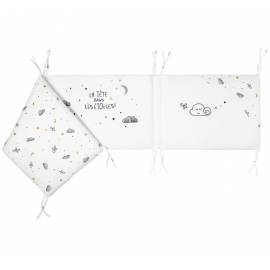 Apportez confort et sécurité au sommeil de votre bébé avec ce tour de lit doux et élégant. Adaptable aux lits de 60x120 cm et 70x140 cm, il crée un véritable cocon rassurant tout en protégeant votre enfant des barreaux du lit.