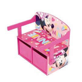 Banc à Jouets 3 en 1 en Bois Transformable en Bureau Minnie