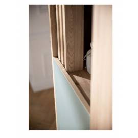 Craquez pour l’armoire de la collection Tokyo, reconnue pour son design unique et très actuel. Avec sa porte vert sauge et ses élégants claustras (positionnables en haut à gauche ou à droite), elle s’adapte à toutes les ambiances de chambre. Pratique et esthétique, elle propose une niche ouverte qui offre une belle liberté de décoration : penderie accessible, rangement pour livres, albums photos ou objets de naissance.