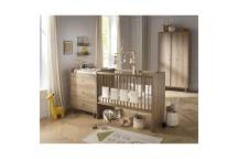 Dès les premiers jours, bébé profite du confort d’un lit 60×120 cm, parfaitement adapté à son sommeil. Juste à côté, un plan à langer sécurisé surplombe une commode à trois tiroirs offrant un accès simple et rapide à tout le nécessaire de change. Chaque geste devient fluide et rassurant.