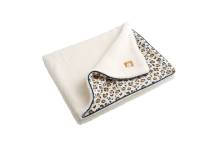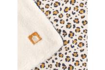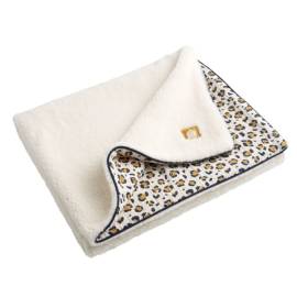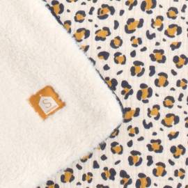 Elle présente deux faces complémentaires : une face en double gaze de coton pour un toucher léger et respirant, et une face en sherpa pour une chaleur réconfortante. Ses motifs léopard apportent une touche tendance et adorable, idéale pour compléter l’univers de bébé.