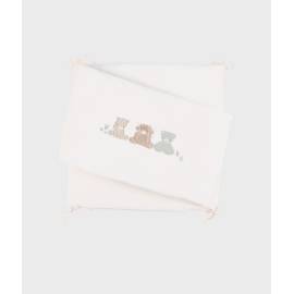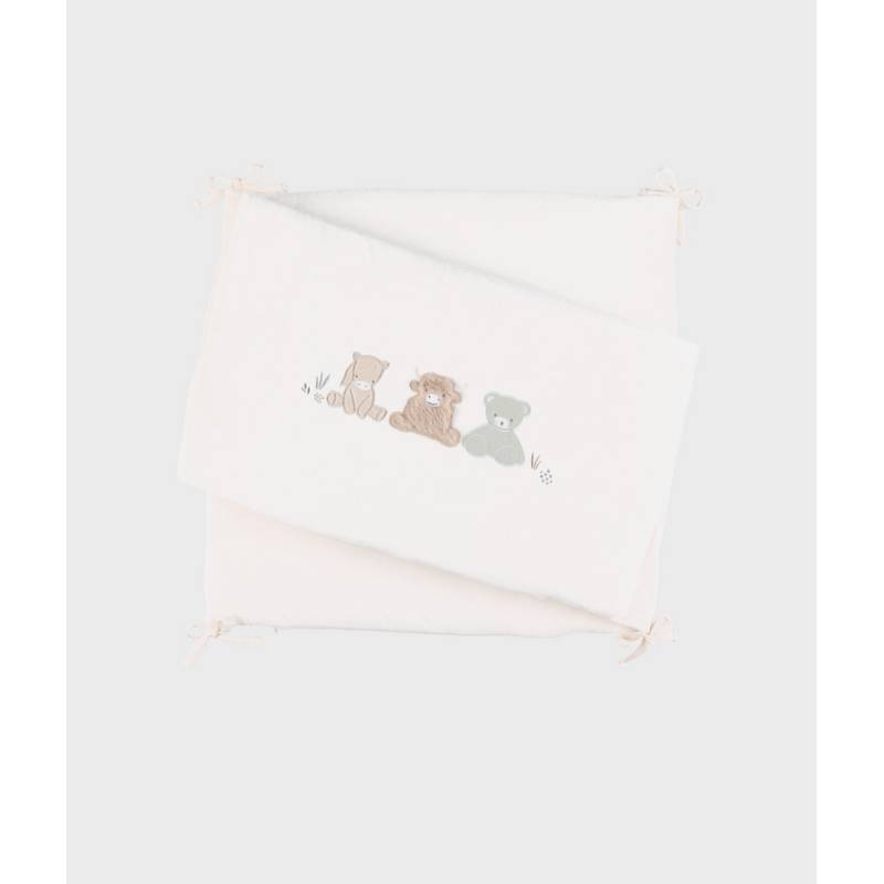 Ce tour de lit déhoussable, aux coloris doux et apaisants, crée une ambiance sereine dans la chambre de bébé. Décoré de broderies représentant les personnages Fluffy, Orso et Lily, il apporte une touche chaleureuse et soignée tout en limitant les chocs contre les barreaux. À la fois décoratif et fonctionnel, il associe confort, protection et douceur pour s’intégrer harmonieusement dans tous les styles de chambre.