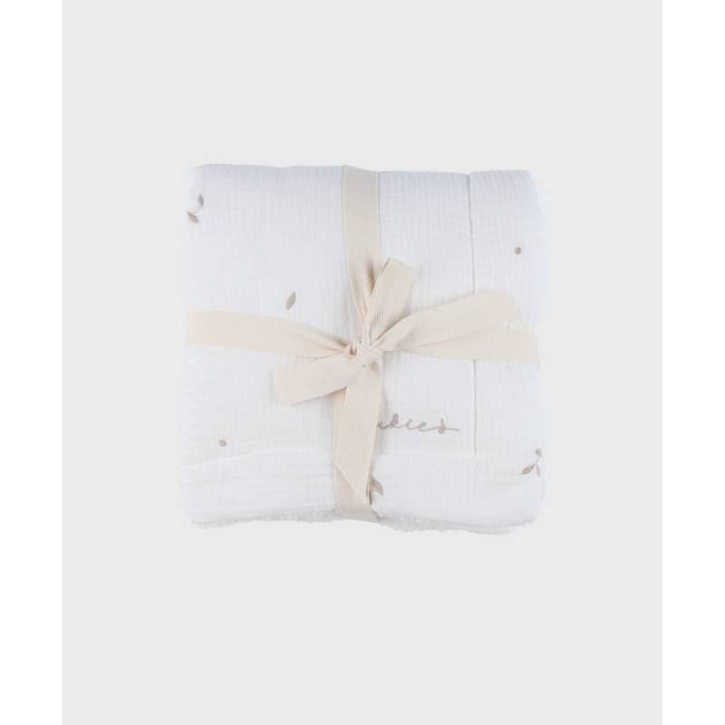 Réalisée en gaze de coton BIO écrue et doublée d’une sherpa blanche moelleuse, elle assure un confort optimal aux tout-petits. Ses délicates broderies végétales et son logo Noukie’s camel créent une touche naturelle et chaleureuse. Son format pratique 75x100 cm en fait un indispensable au quotidien, à la maison comme en déplacement.