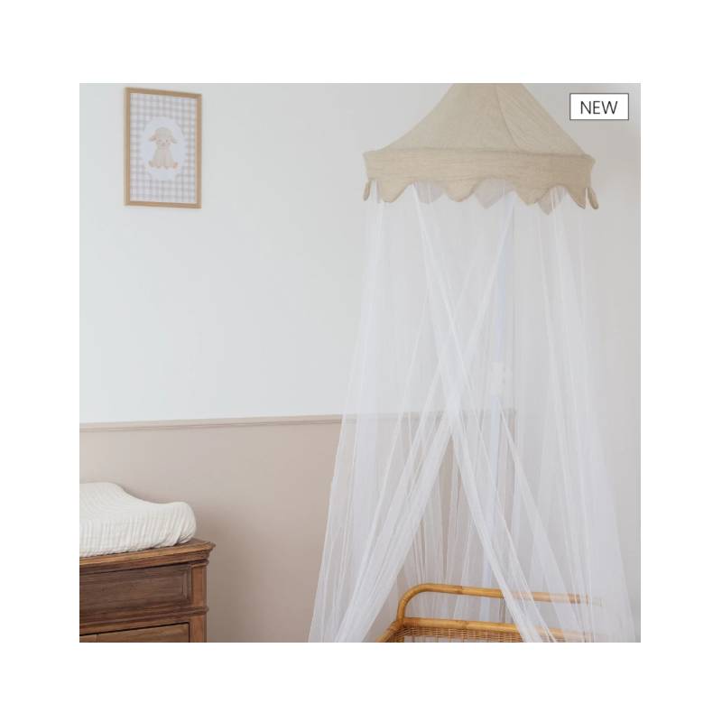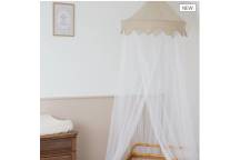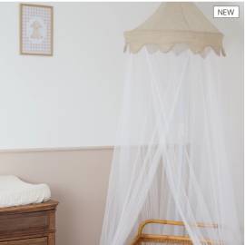 Ce ciel de lit bébé combine légèreté et praticité pour créer un cocon apaisant au-dessus du lit. Fixé au plafond, son voile aérien forme une enveloppe douce qui limite le passage des insectes tout en apportant une sensation de sécurité à l’enfant. Sa teinte sable, discrète et élégante, s’intègre facilement dans tous les styles de décoration, qu’ils soient épurés, naturels ou plus contemporains.