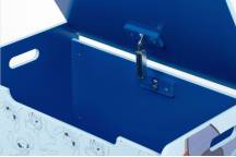 Compact et fonctionnel, il sert à la fois de siège et d’espace de rangement pour jouets, déguisements ou vêtements. Son couvercle doté d’un verrou de sécurité évite les fermetures brusques, et ses poches latérales facilitent le transport. Conforme aux normes européennes, il offre une solution de rangement fiable et attrayante.