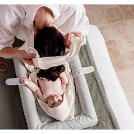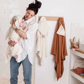 Avec son système d’attache autour du cou, les parents gardent les mains libres pour sécher et câliner bébé en toute sécurité. Sa capuche intégrée permet de garder la tête de bébé bien au chaud, évitant ainsi les courants d’air.