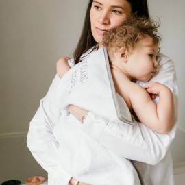 La cape de bain Petit Cœur est parfaite pour envelopper bébé de douceur à la sortie du bain.