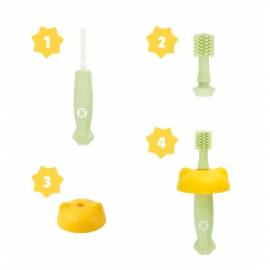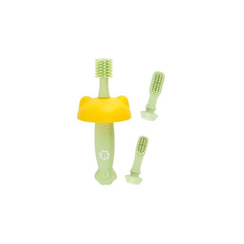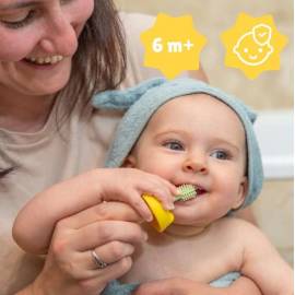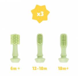 La brosse à dents évolutive en silicone Badabulle est conçue pour accompagner votre enfant dans l’apprentissage de l’hygiène bucco-dentaire dès ses 6 mois jusqu’à ses 3 ans. Grâce à ses trois embouts interchangeables, elle s’adapte à chaque phase de la dentition pour un brossage progressif, sécurisé et tout en douceur.