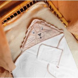 Offrez à bébé un moment de douceur après le bain avec cette cape de bain 70x70 cm pensée pour allier confort, praticité et style. Conçue dans des teintes apaisantes de blanc et beige avec un joli motif inspiré de la savane, elle transforme le moment du bain en une expérience réconfortante.