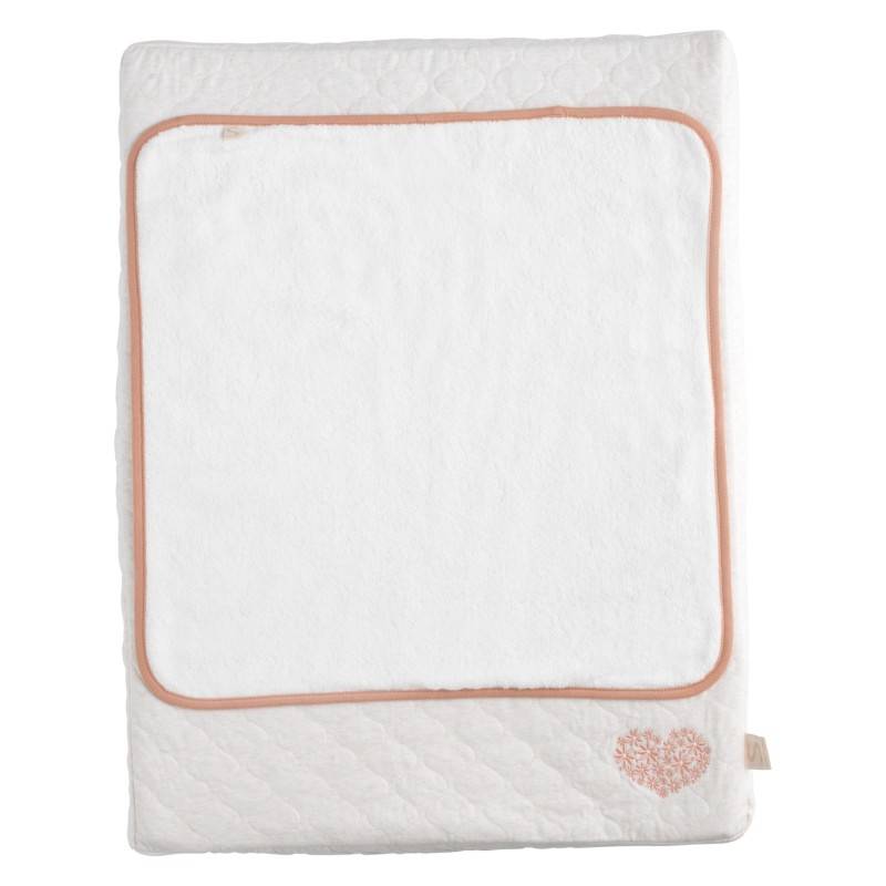 Le matelas à langer Petit Cœur de Sauthon allie qualité et praticité. Ce kit complet comprend six éléments essentiels : un matelas déperlant, une housse matelassée, une serviette éponge doublée et trois carrés éponges.