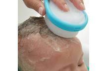 Détachez – Massez délicatement le cuir chevelu avec la brosse à poils doux qui épouse parfaitement la forme de la tête de bébé pour décoller les croûtes.