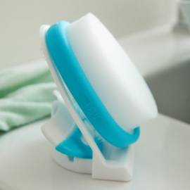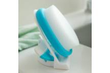 Savonnez – Utilisez l’éponge double face super douce pour faire mousser la tête de bébé avec du savon, un shampooing spécial croûte de lait ou de l’huile.