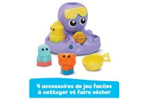 En plus de l’effet tourbillon, les blocs animaux éclabousseurs permettent de découvrir les formes tout en s’amusant. Avec ses projections d’eau et ses accessoires colorés, Julie stimule à la fois les sens, la curiosité et la motricité de l’enfant.